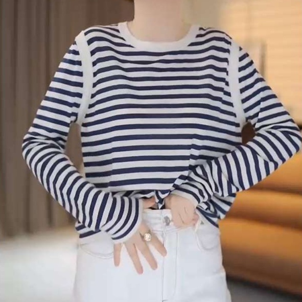 シンプルで爽やかな印象のボーダー柄ロンT。