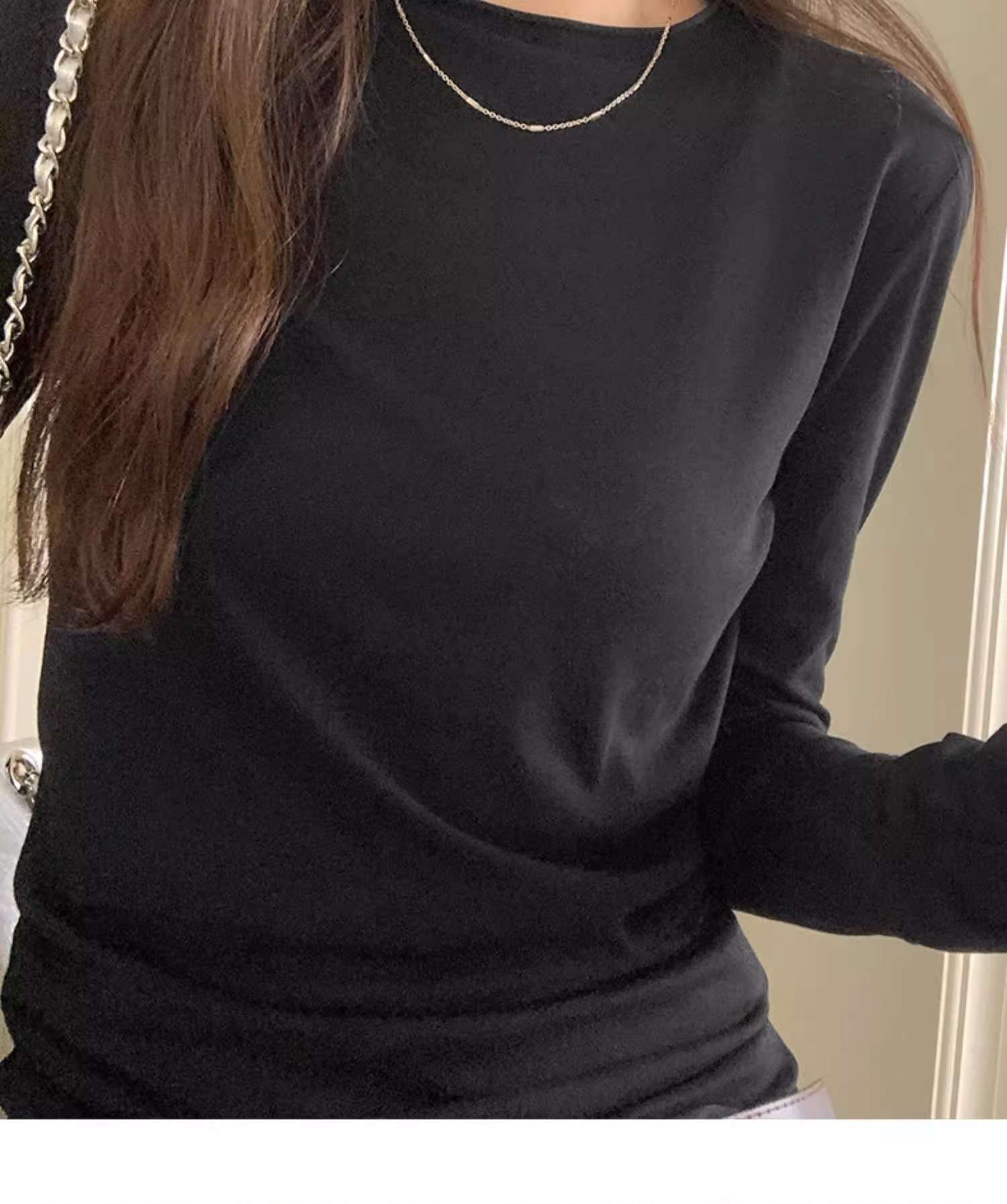 体にすっきりフィットするシルエットが特徴的な長袖カットソー。