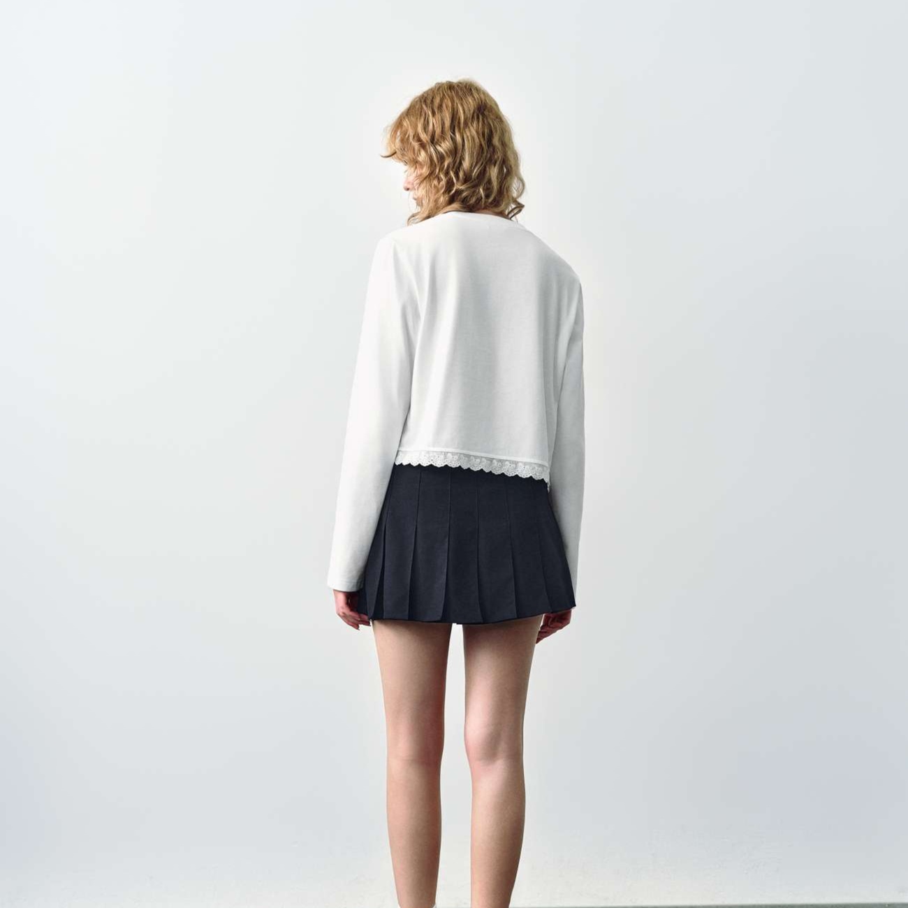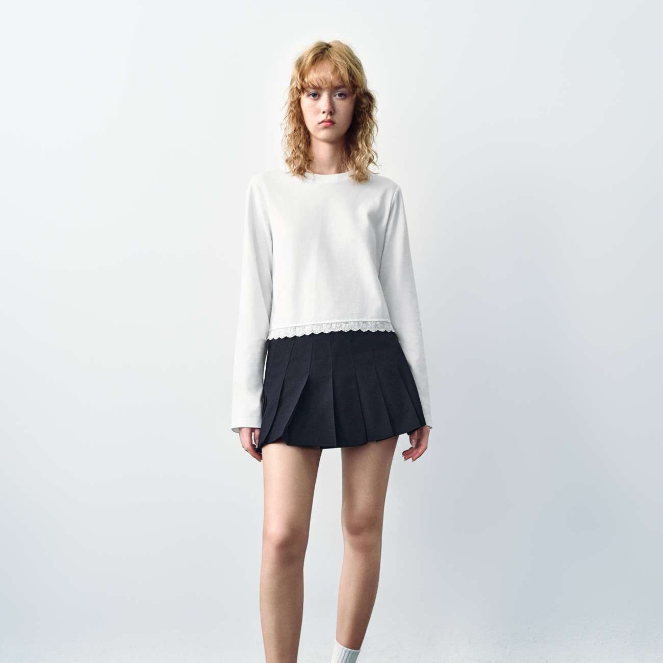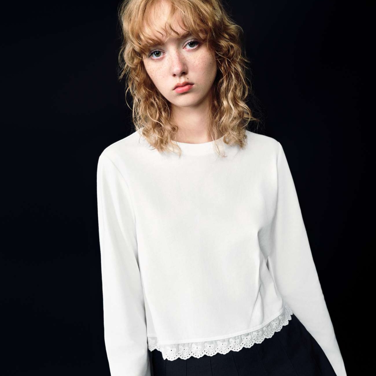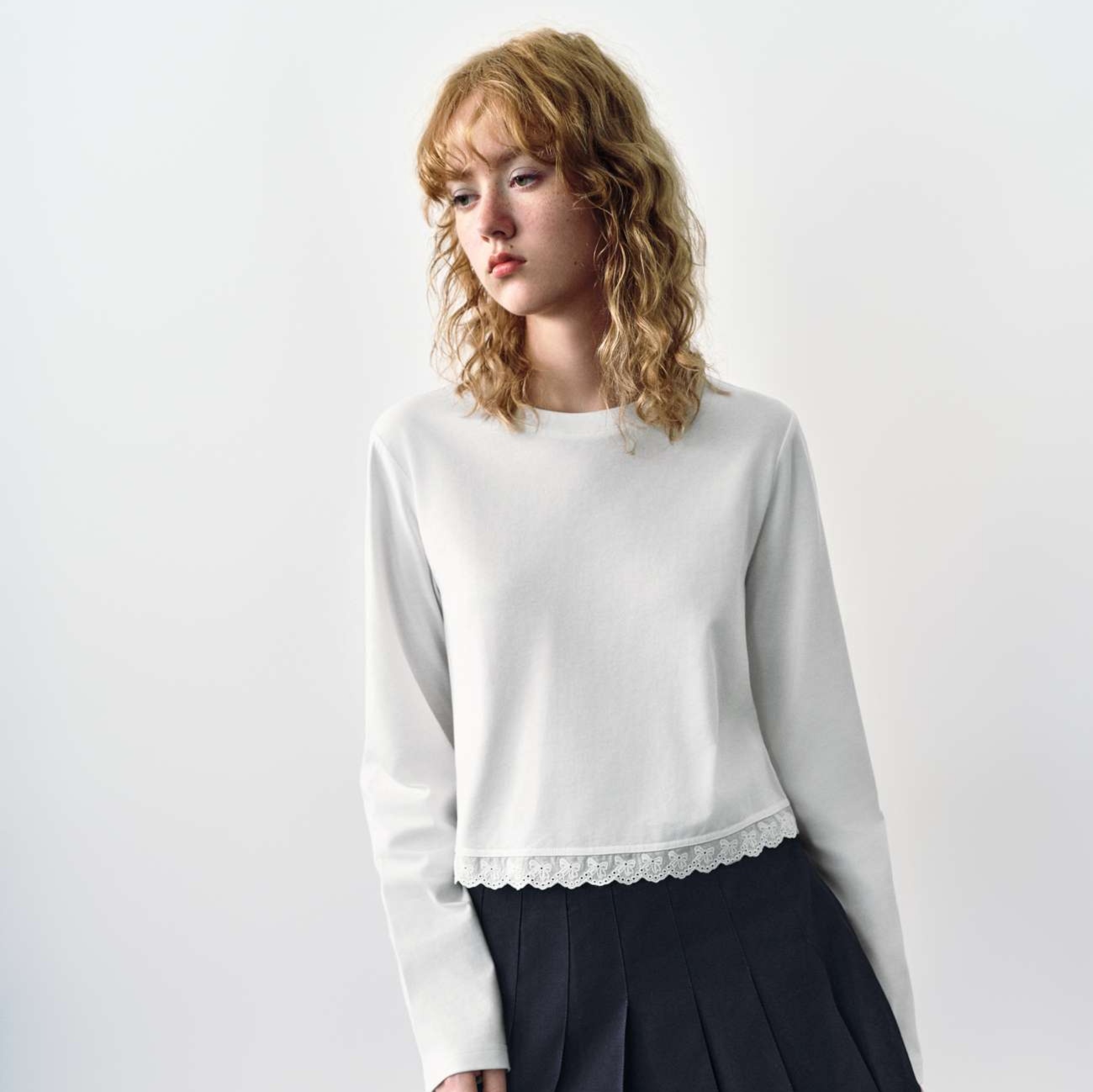 上品な裾レース装飾が特徴的な高品質コットン素材のロンT。