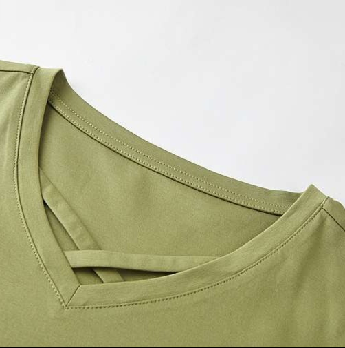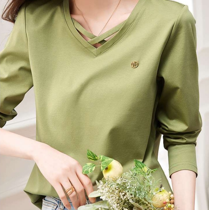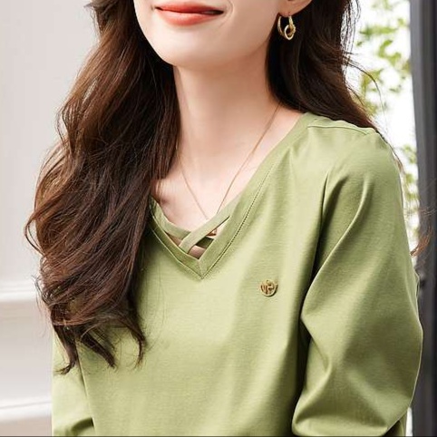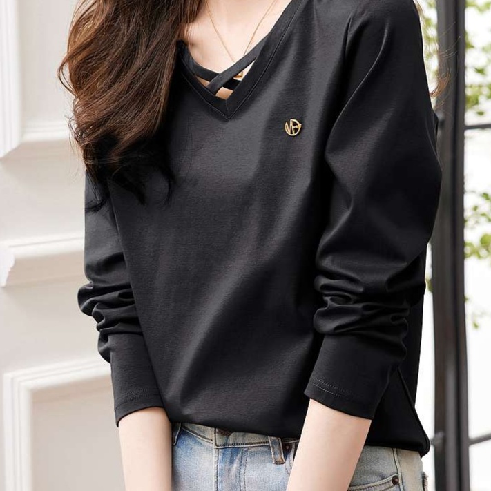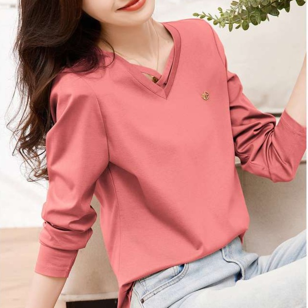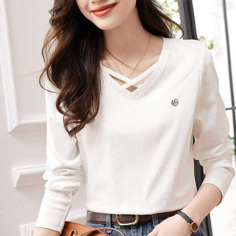 しなやかな素材感が魅力のVネックロンT。胸元のクロスデザインに小さな刺繍が施され、おしゃれなアクセントをプラス。リラックスした着心地で、デニムとの相性も抜群です。カジュアルな日常使いからオフィスシーンまで幅広く対応できる一枚。スタイリッシュに決まるVネックが、あなたのコーディネートに新たな風を吹き込みます。
