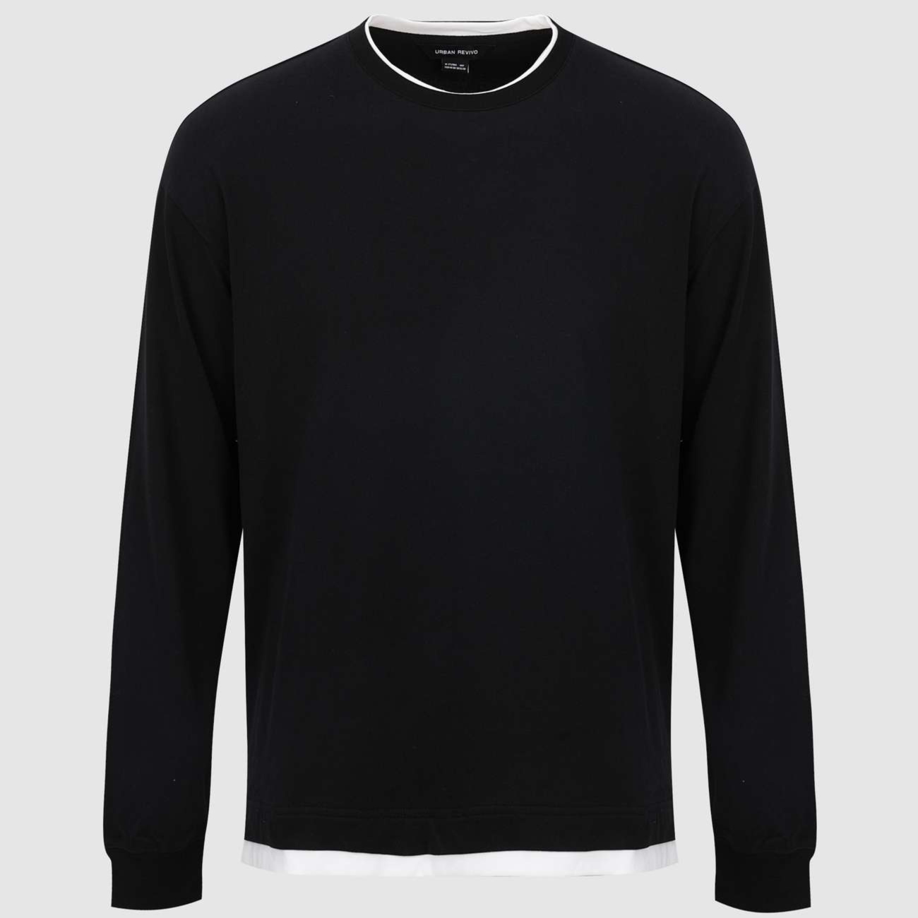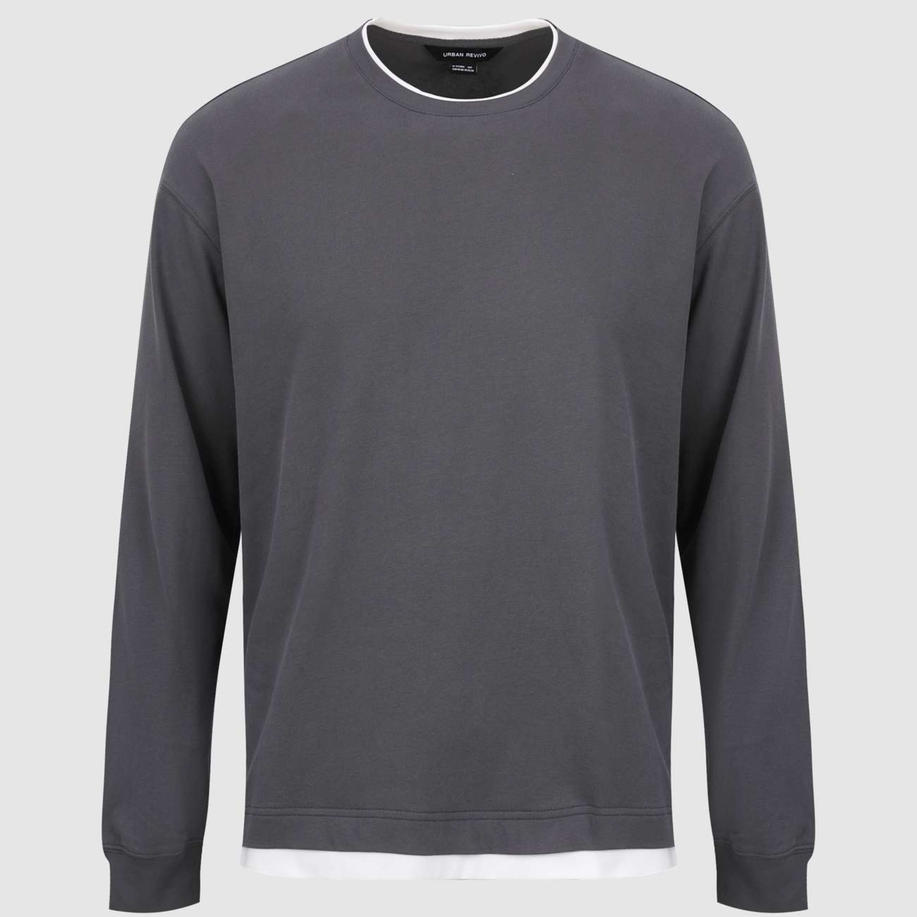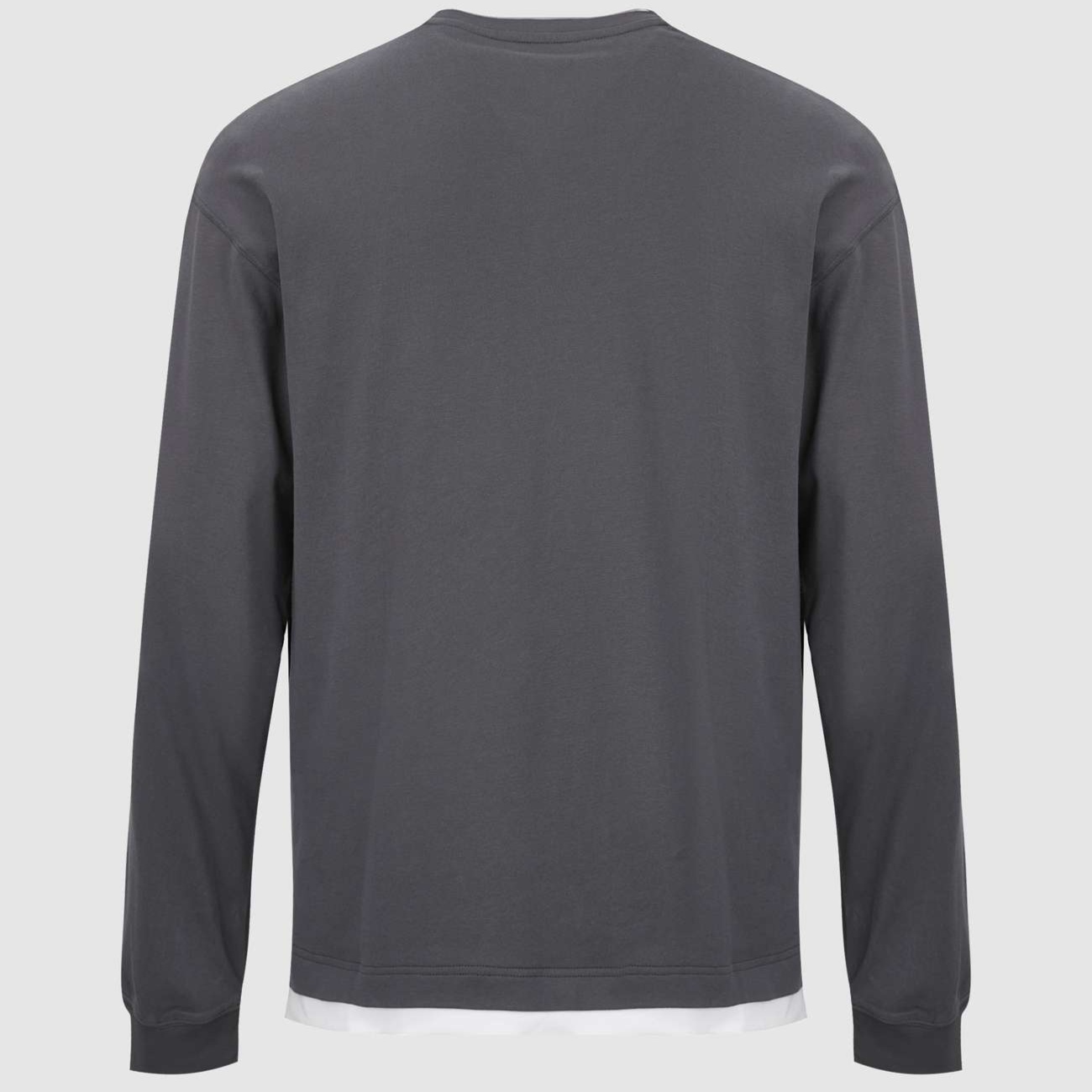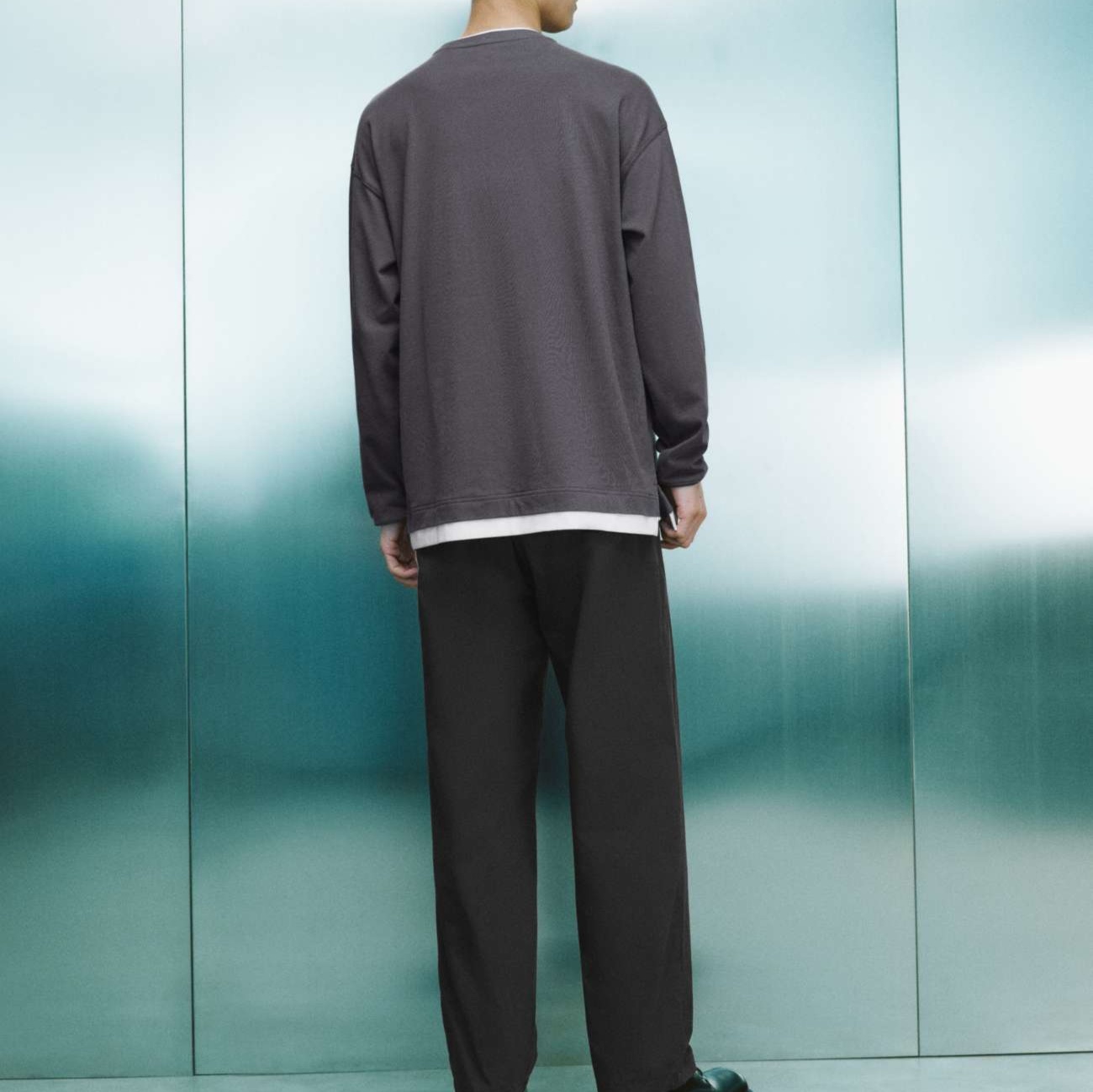 レイヤードスタイルを演出する裾デザインが、シンプルながらもアクセントになる洗練されたロンTに。
