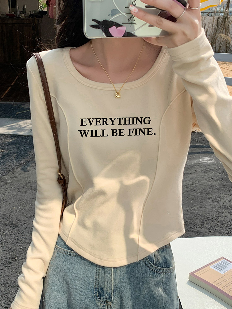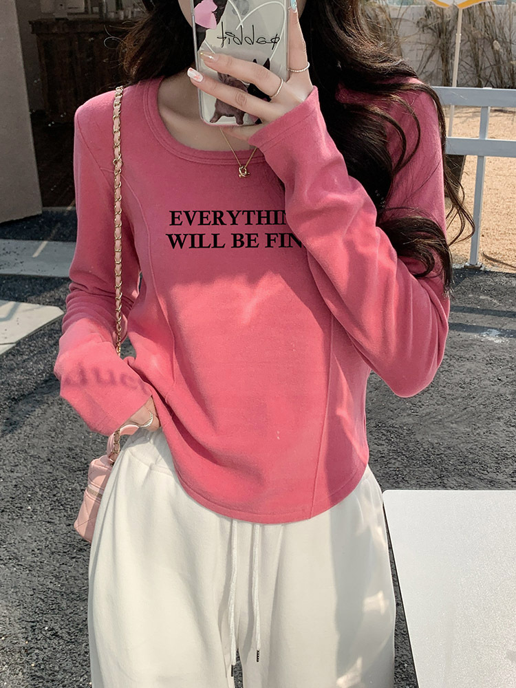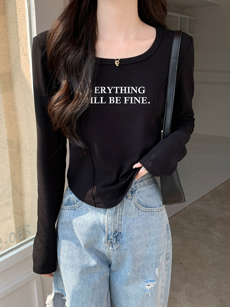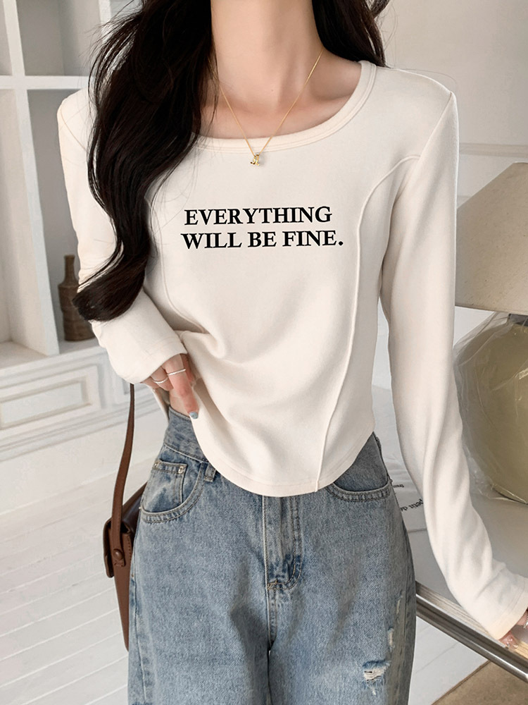 胸元に印象的なメッセージプリントをあしらったロンTです。