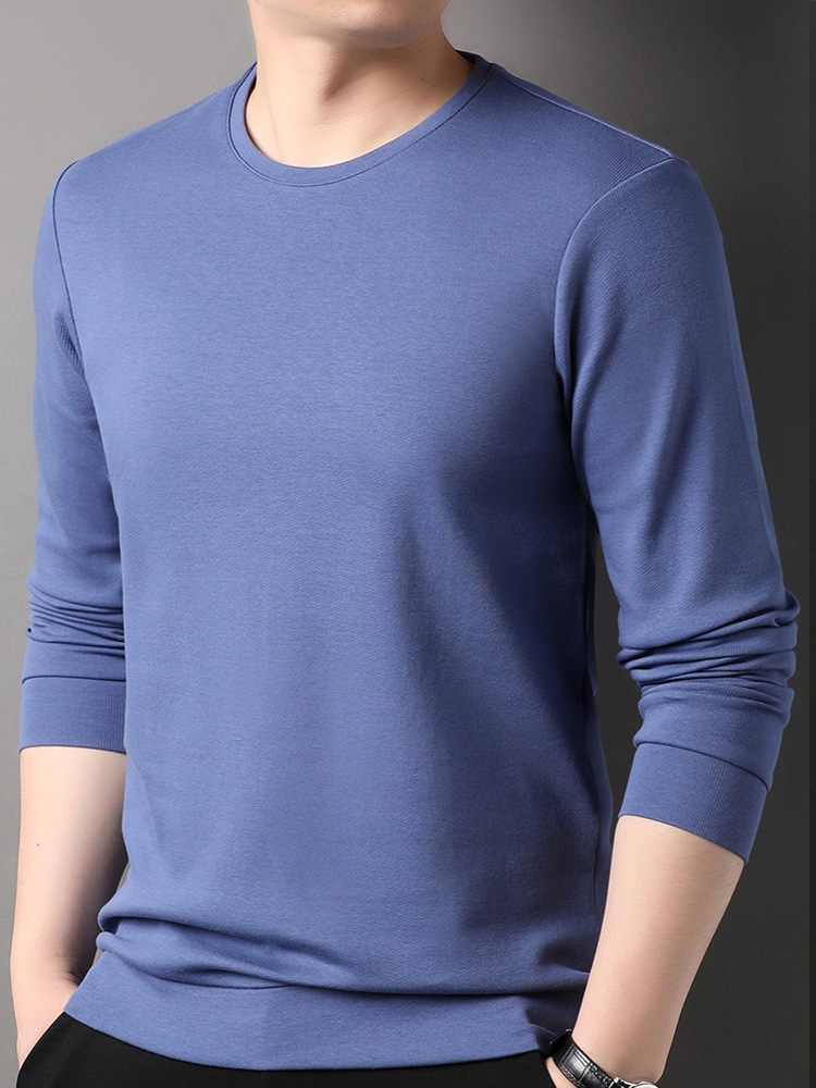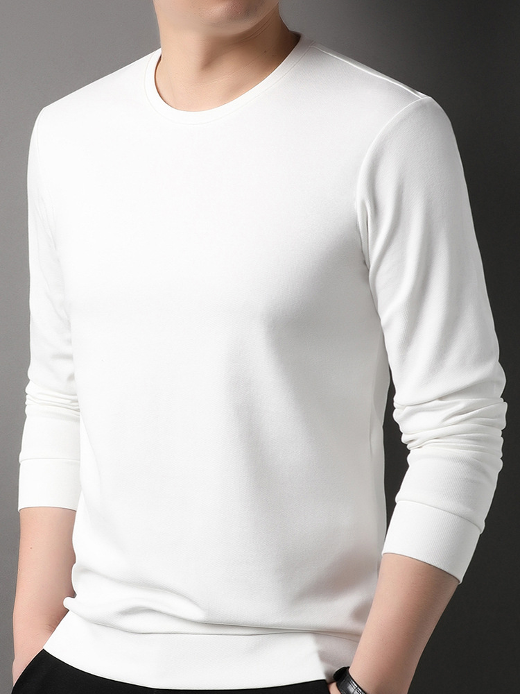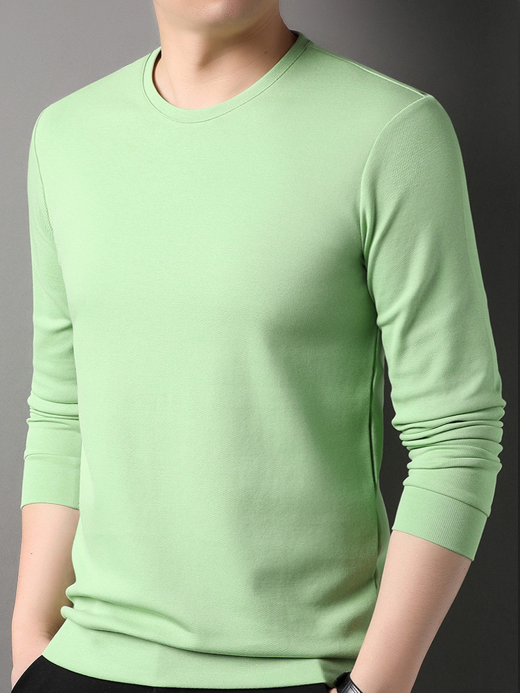 クルーネックのすっきりとしたデザインで、幅広いボトムスと相性抜群。