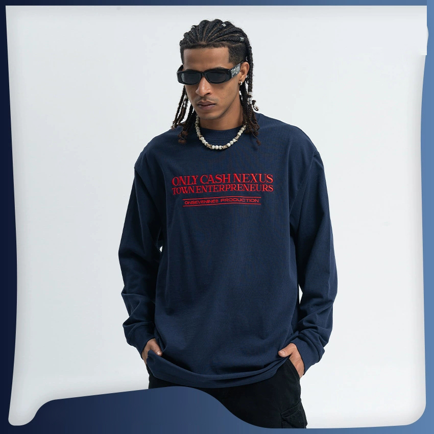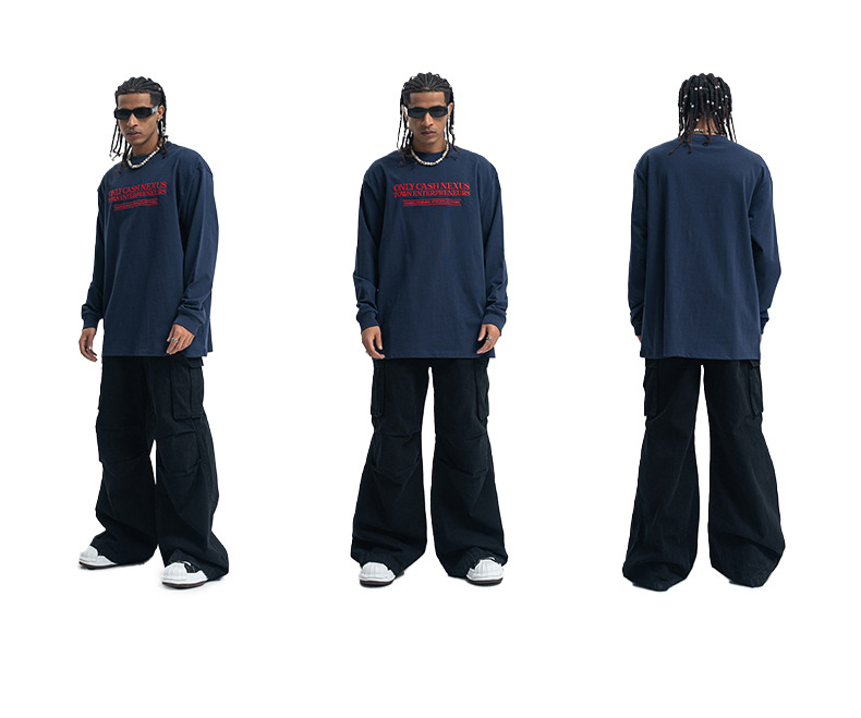サイズ表記単位:CM 採寸に個人差があり1-2cm誤差がある場合がございます。 ▲【カラー】ネイビー ▲【素材】コットン ▲【セット内容】Tシャツ/生地270g ▲【サイズ】 S 着丈71cm バスト112cm 肩幅53cm 袖丈53cm M 着丈75cm バスト116cm 肩幅54cm 袖丈54cm L 着丈79cm バスト120cm 肩幅56cm 袖丈56cm XL 着丈81cm バスト124cm 肩幅58cm 袖丈58cm XXL 着丈84cm バスト128cm 肩幅59cm 袖丈59cm