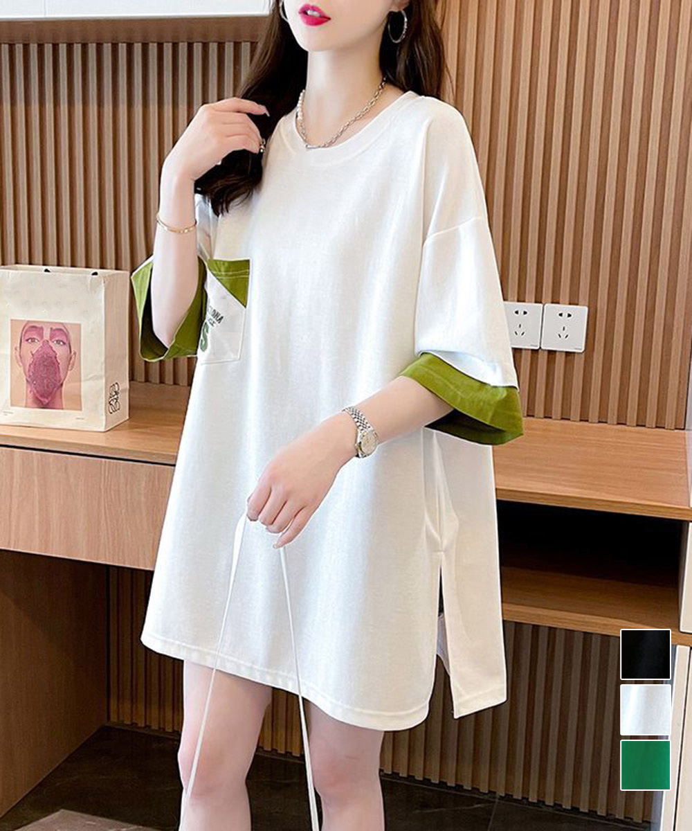 素材:ポリエステル75%+綿25% カラー:ブラック/ホワイト/グリーン サイズ:ワンサイズ 着丈:約74cm 肩幅:約54cm 袖丈:約25cm ゆき:約52cm 身幅:約58cm 胸囲:約116cm 裏地:なし 伸縮性:なし 透け感:ホワイトのみややあり ※すべて平置きサイズです(採寸方法違いより、多少の誤差がございますので、ご了承ください)。 ※商品の細部仕様は多少異なる場合がございます。予めご了承の上、ご注文お願い致します。
